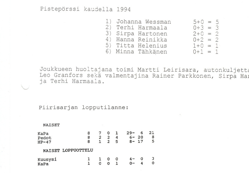 Kauden aikana pelejä oli ainoastaan kahdeksan, koska Lahdenpiirissä ei ollut kuin kolme joukkuetta piirisarjassa.